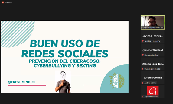 Durante la actividad, que se desarrolló de forma online, se realizaron presentaciones introductorias de temáticas referentes al acoso por medio de redes sociales y cómo impactan en un determinado contexto social-personal-educacional.