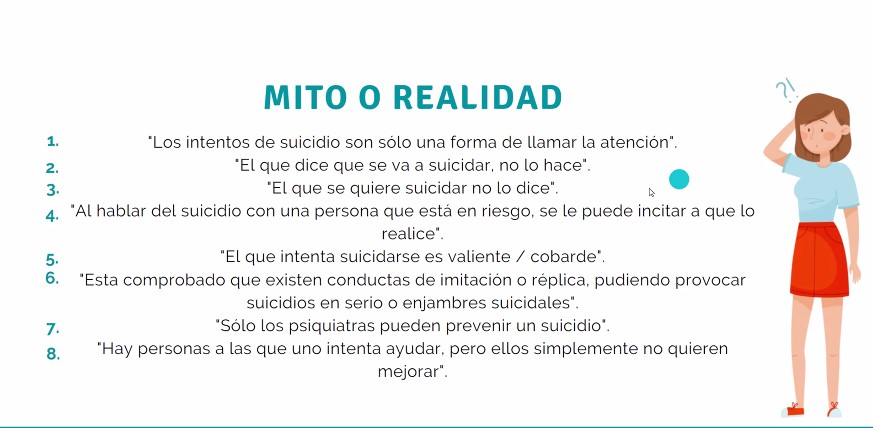 ¿Qué hacer frente a alguien que nos dice “me quiero suicidar”?, fue una de las preguntas que se planteó en la jornada. Los psicólogos, junto a los estudiantes participantes, abordaron algunas de las acciones que podemos hacer como humanos ante esta situación: