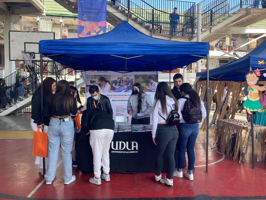 En paralelo a las actividades, se contó con la participación del área de difusión de Universidad de las Américas, donde se pudo apreciar a muchos estudiantes del liceo interesados en la oferta académica de la institución.