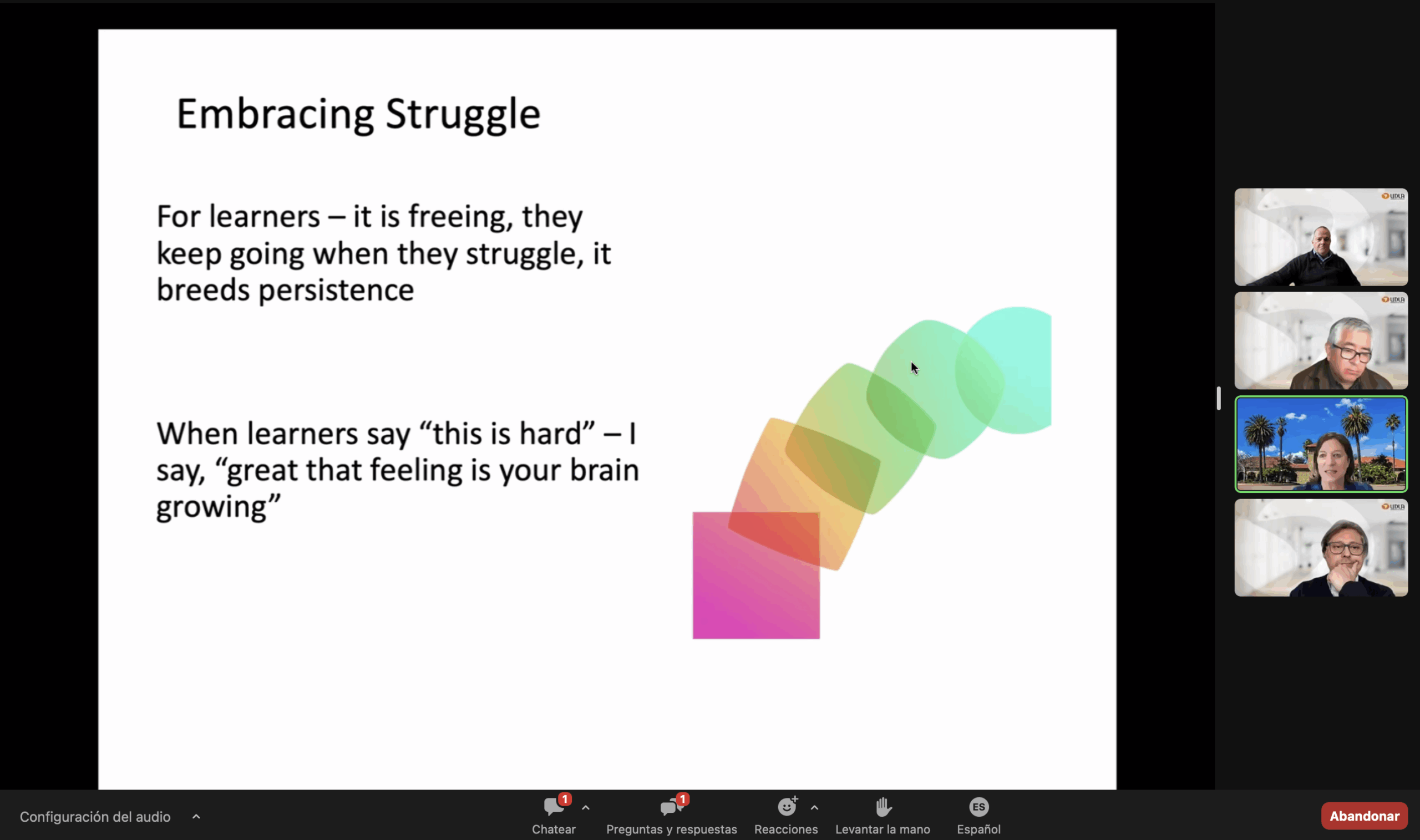 La expositora, autora de libros como “Mentalidades Matemáticas” y “Mentes sin límites: aprendizaje sin fronteras”, fue designada por la BBC como una de las ocho educadoras que “han cambiado el rostro de la educación”. Boaler también ha trabajado con la psicóloga e investigadora Carol Dweck, en la Universidad de Standford, para estudiar y proporcionar al estudiantado, profesorado y familias, herramientas que contribuyan al desarrollo de su mentalidad de crecimiento.