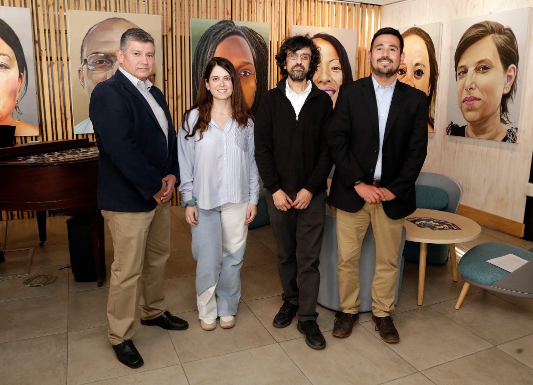 Grupo de 4 en sala de exposicionesEl objetivo central de esta exposición es poner de manifiesto la importancia de visibilizar a quienes comparten nuestro territorio. Las obras de Leonardo Soto no buscan solo ser retratos, sino también testimonios visuales que buscan generar conciencia y reflexión en la comunidad.