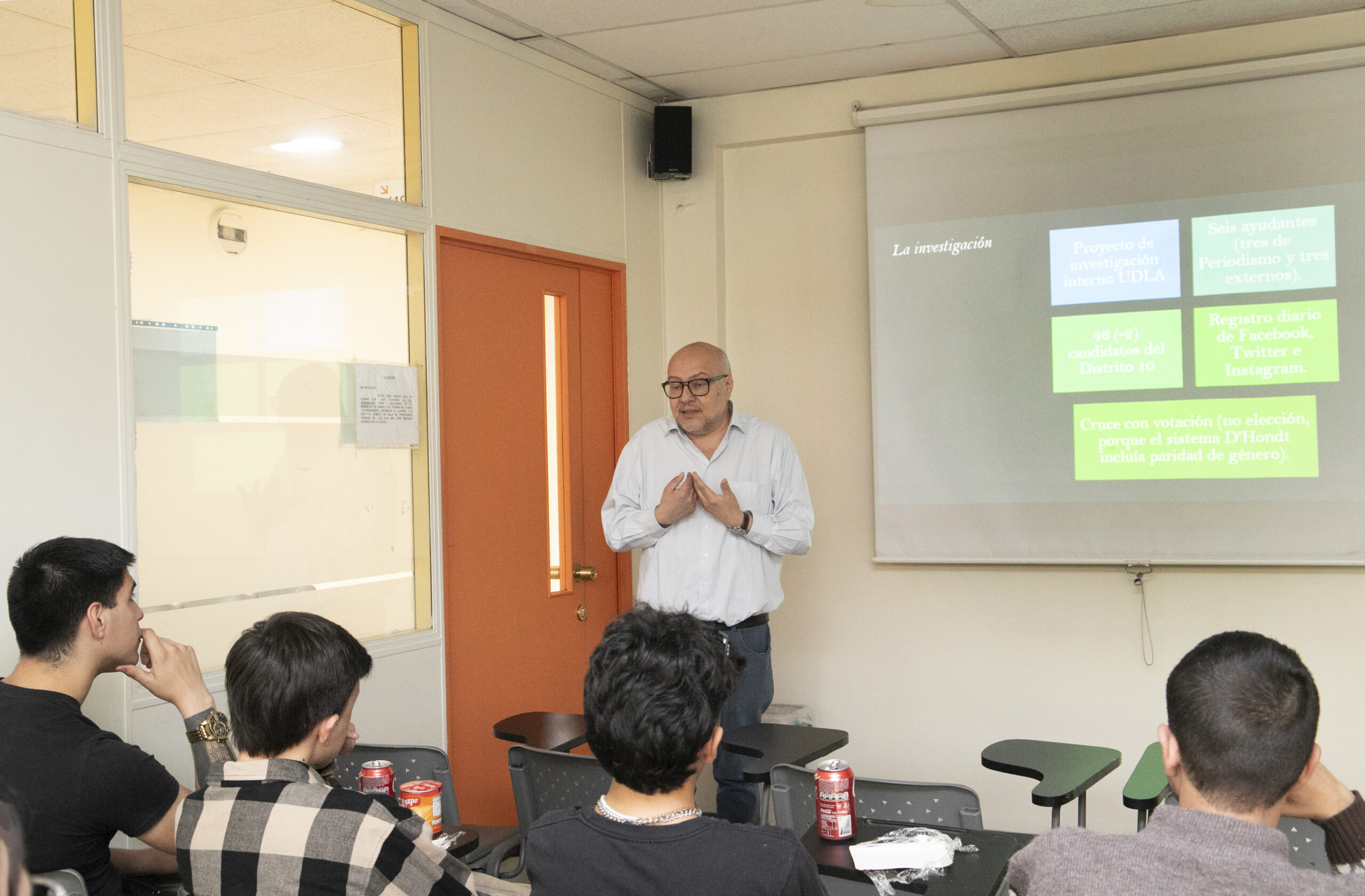 Académico del Observatorio de Nueva Ciudadanía de UDLA presenta a estudiantes de Periodismo estudio de redes sociales como herramienta de propaganda